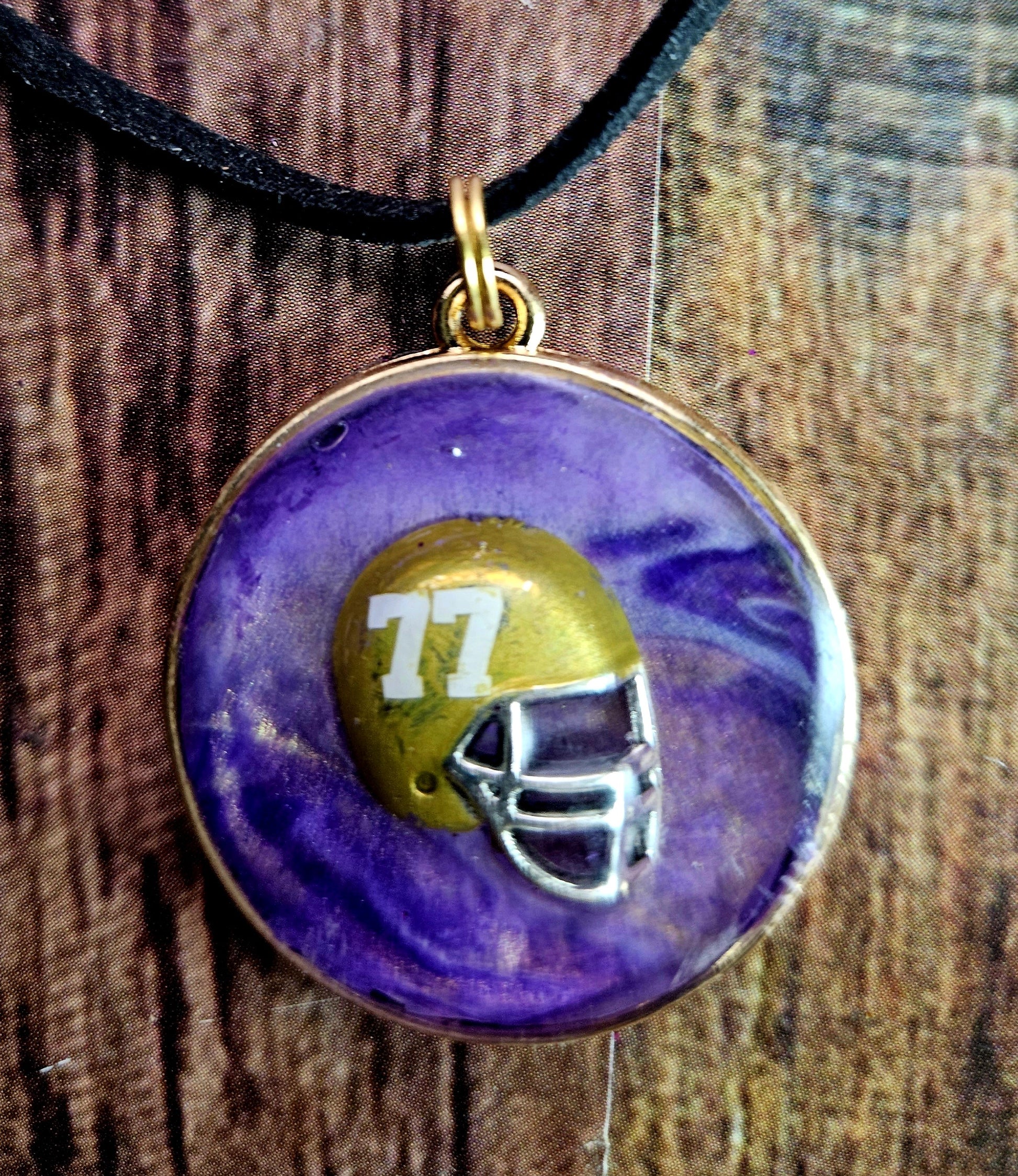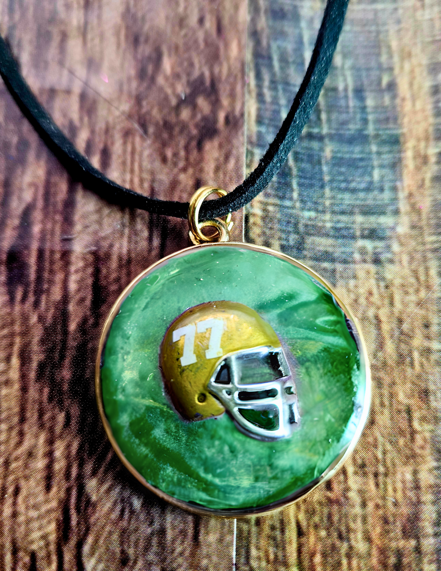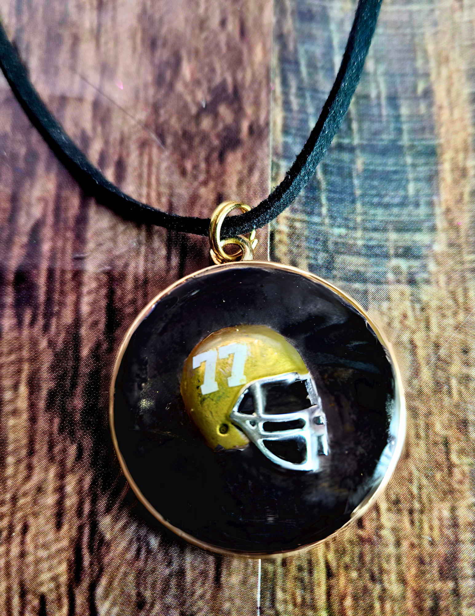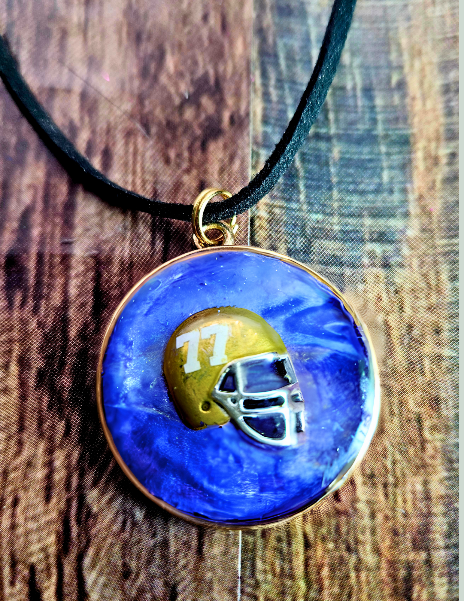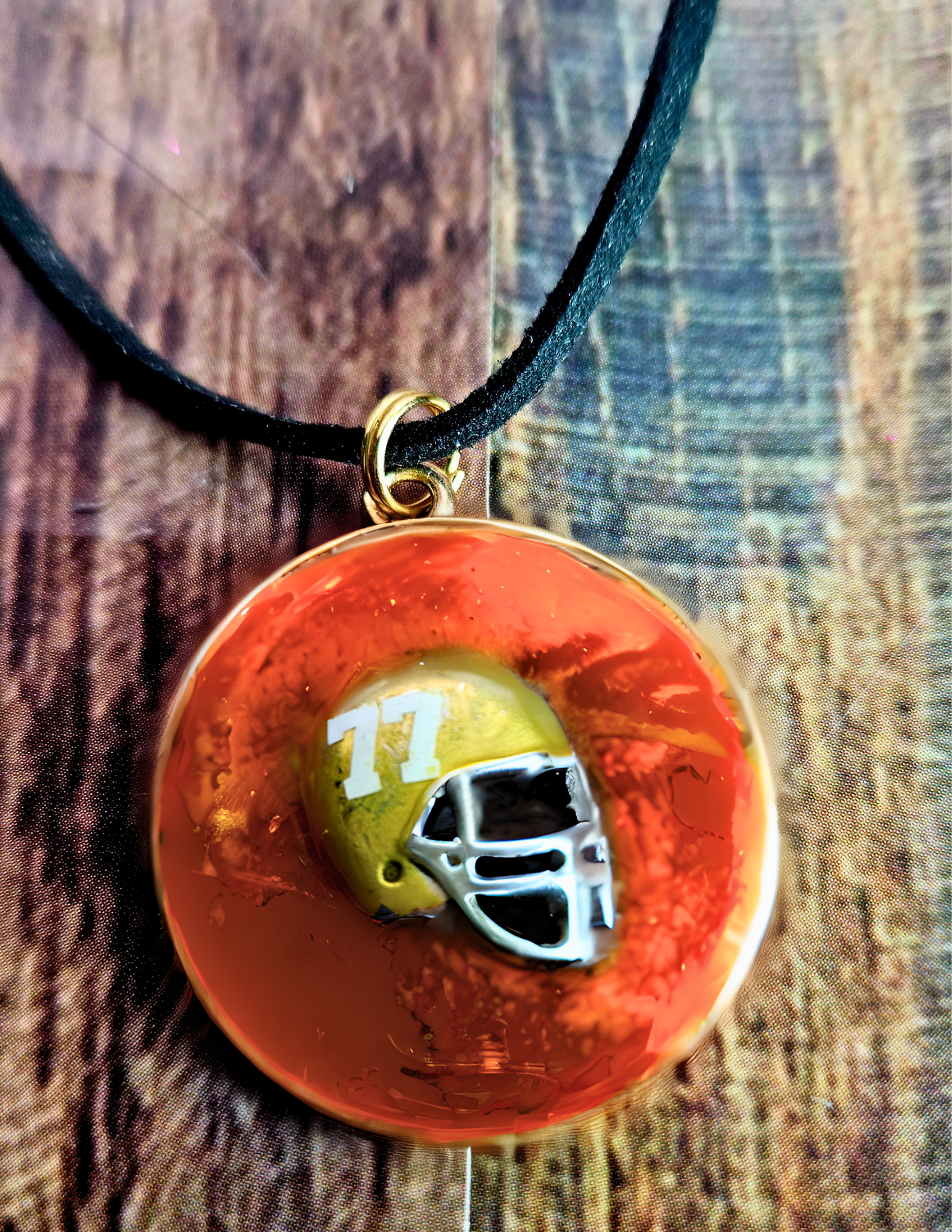 You choose the colors, the number on the helmet, and even add your name. This necklace is a great way to show off your love for the sport and your favorite team.
